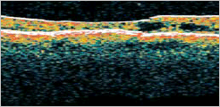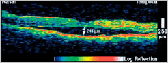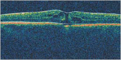 Eine Lochbildung in der Netzhautmitte (Makulaforamen) ist nur mit dem OCT darstellbar und messbar. Eine möglichst genaue Dokumentation der Ausmaße entzündlicher Veränderungen ist von großer Bedeutung, um frühzeitig eine Größenzunahme festzustellen.